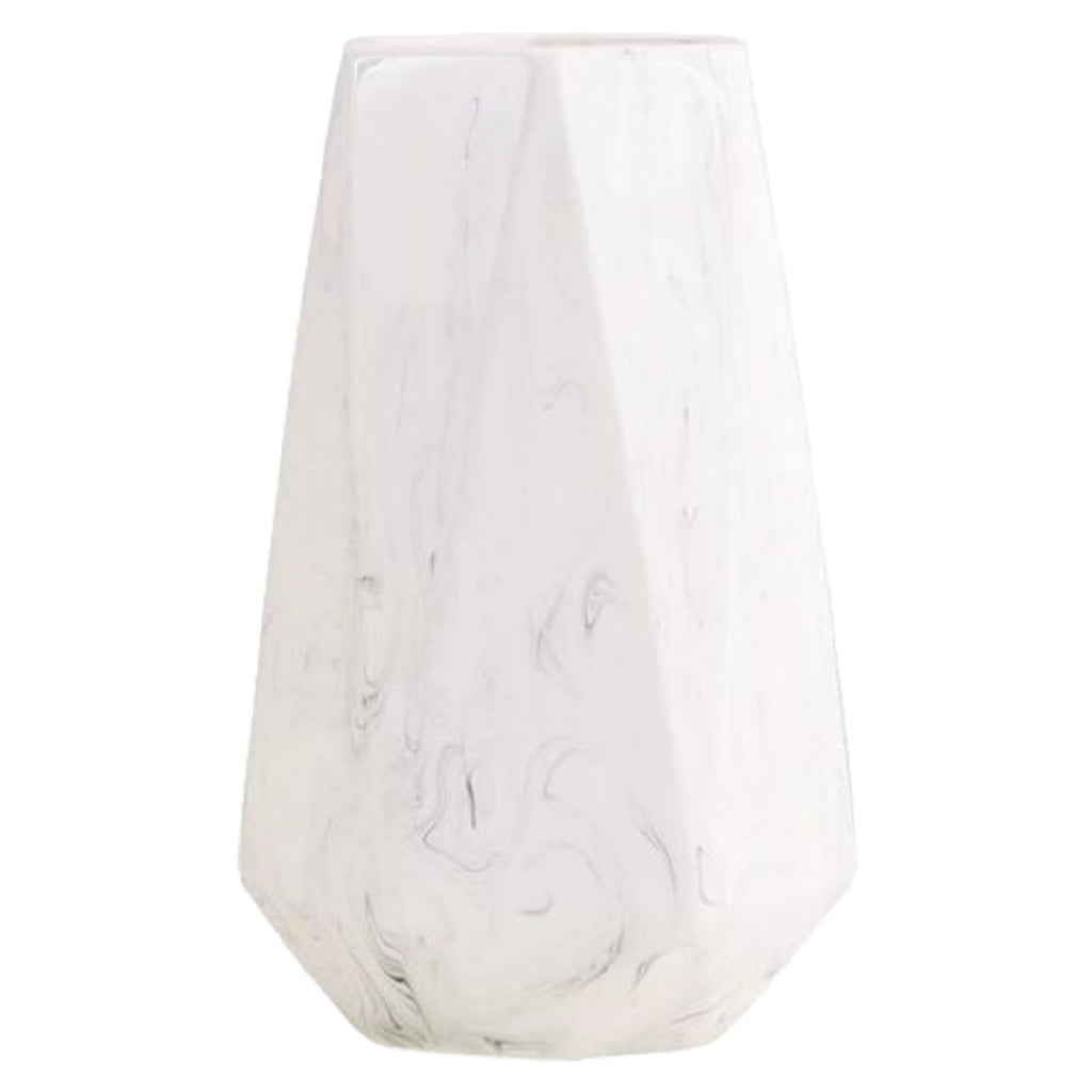 Moderne Geometrische Vaas met Marmerlook - Wit en Grijs Keramiek